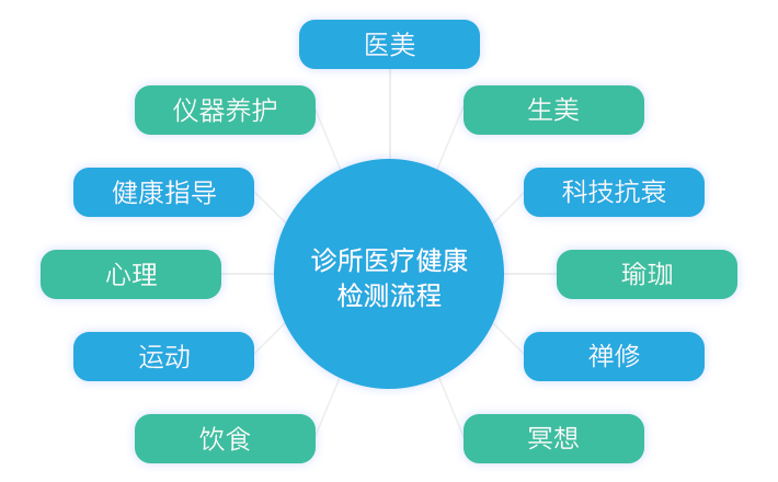 永具体验中心提供检测、评估、预防、医疗、养护、管理为一体全方位健康管理服务。 集常规检测、功能医学检测、AI中医舌诊、脉诊、面诊、疾病治疗、医疗美容、生活美容、科技抗衰、家庭医生服务、养老服务、健康管理师、健康穿戴设备体验等项目的开展,我们希望用科技为健康生命提供更好的服务。